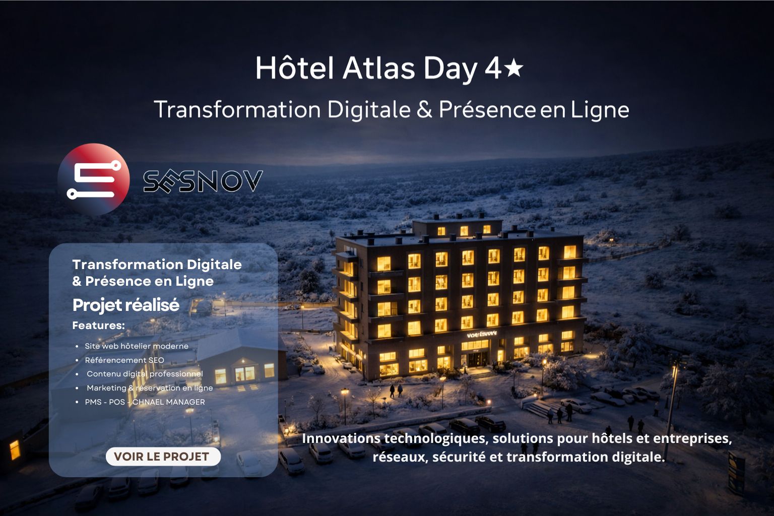 SESNOV a déployé une solution digitale complète pour améliorer la visibilité et la performance commerciale de l’Hôtel Atlas Day 4★★★★.